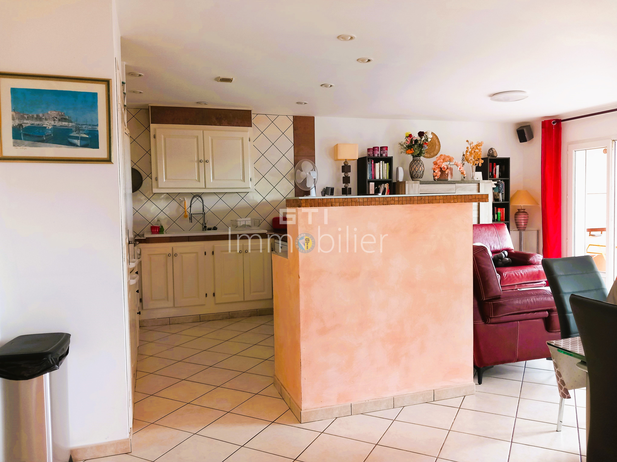 - Un espace convivial comprenant séjour et salle à manger ouvert sur une cuisine aménagée et équipée.