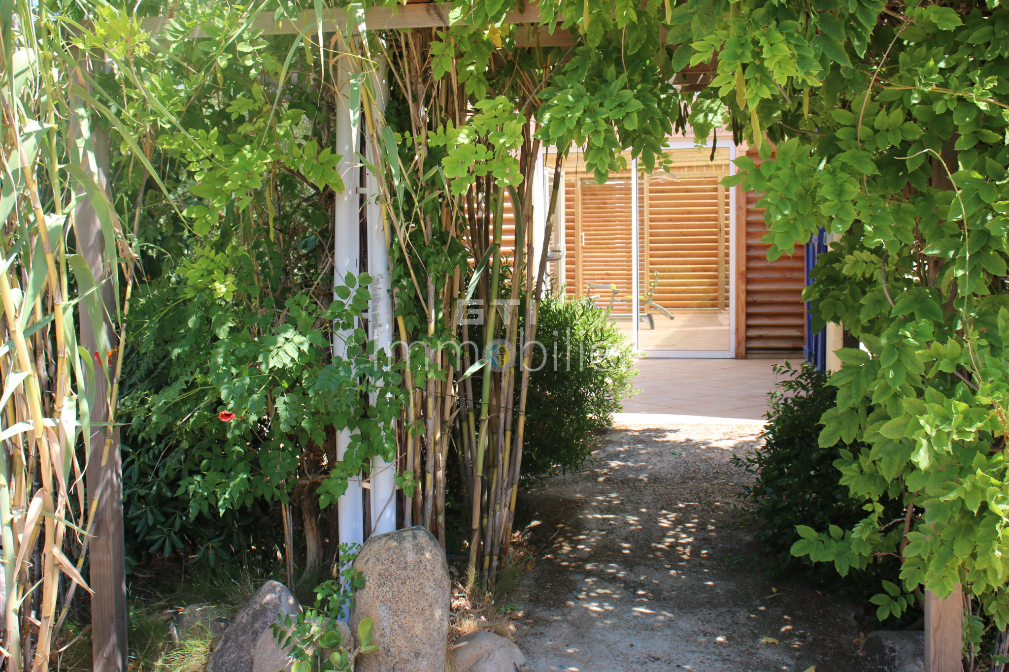 D'une surface de 103 m2 la villa de plain pied comprend un séjour climatisé un salon une cuisine ouverte aménagée trois chambres une salle d'eau avec double vasque un wc indépendant et deux terrasses avec pergola.